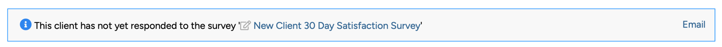 Note: Because a survey sent via an automated task generally speaking has a Request List with a Response Period End Date far into the future, the survey reminder could potentially stay on the client record for a long time if they don't respond. Neoserra "times out" the survey reminder banner on the client record after 90-days.