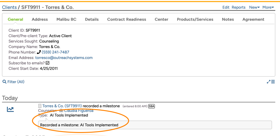 This line item counts the total number of unique clients who have an "AI Tools Implemented" milestone within the reporting period: