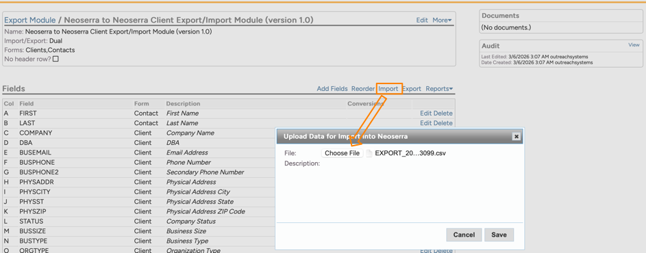 Two things will happen. First of all, a copy of the .CSV file will be saved to your Neoserra database: