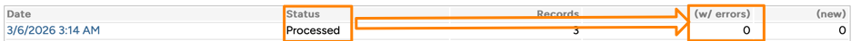 There should never be errors since you are transferring data from one Neoserra database to another, but if the two databases are using different versions of the Neoserra to Neoserra Client Export/Import definition record then errors may be introduced. Always double check that the processed file shows zero (0) errors!