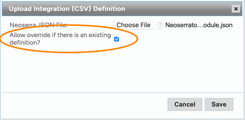 When Neoserra asks you to overwrite a previous version of the definition file, make sure you check the box to ensure that you are going to be working with the latest version of the file:
